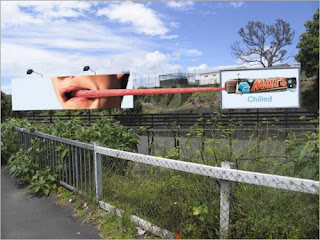 Es llamativo por la manera que utilizan ambas vallas, juntándolas de modo que parezca una sola, y haciendo apetecible la barra de chocolate Mars.